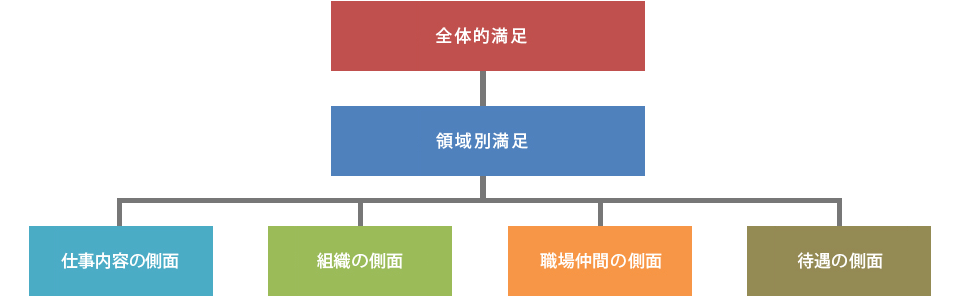 従業員満足度調査(ES調査)は、大きく「全体満足」と「領域別満足」の視点から調査します。