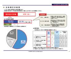 - 記述統計…全体満足、各領域別満足の統計数値(平均値、偏差値、回答数)。